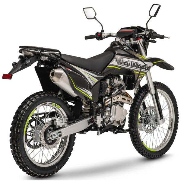 With TrailMaster’s T5 250 dual sport dirt bike, you can ride off-road and still have all the equipment you need for street riding! A high-powered 223cc four-stroke engine gives the T5 a 57 mph top speed! Experienced riders can take advantage of this motorcycle’s smooth shifting five-speed transmission for incredible control, power delivery and torque.